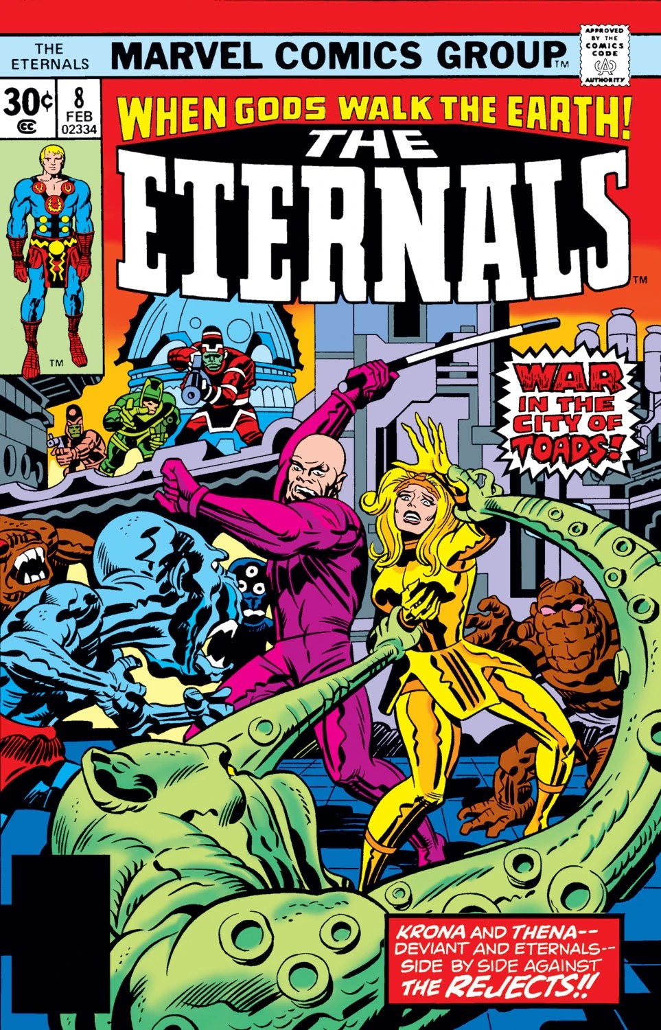 My personal favorite is “War in the City of Toads!” appearing on the cover of Marvel’s Eternals #8 way back in 1977.