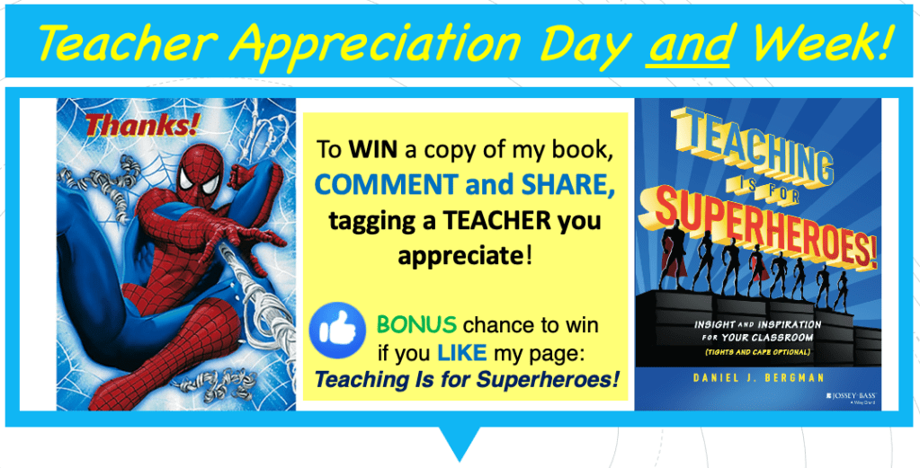 Most importantly, check out the “Teaching Is for Superheroes!” Facebook page, where you can join a GIVEAWAY contest for a FREE copy of my new book!